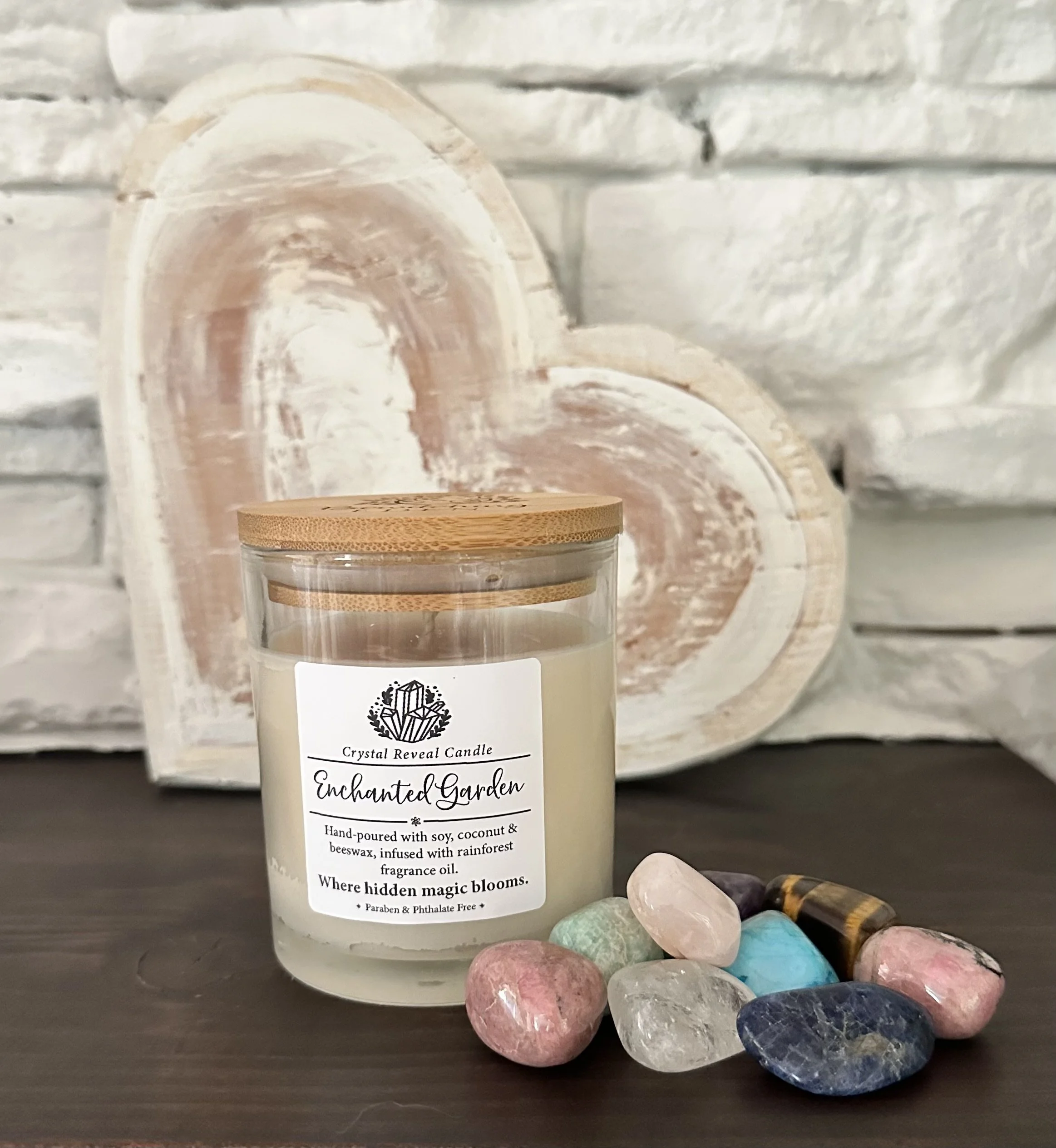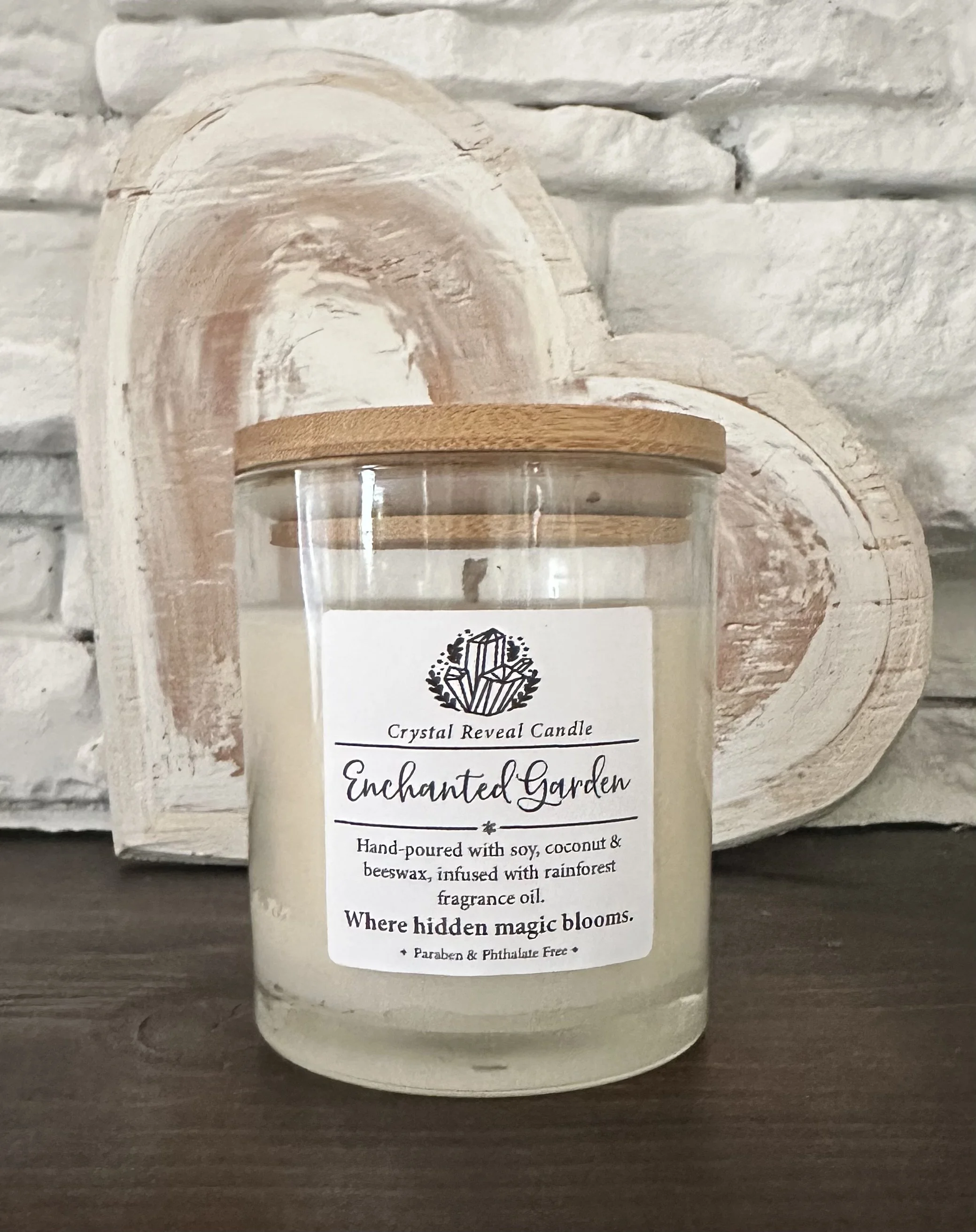 As the wax melts, a hidden crystal slowly emerges — infusing your space with courage, clarity, and grounded light.